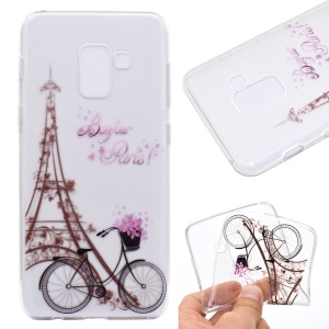 Pattern Printing TPU Cover Case for Samsung Galaxy A8 Plus (2018) - Eiffel Tower and Bicycle