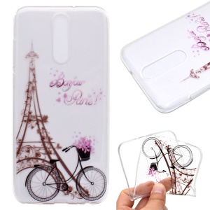 Pattern Printing TPU Gel Back Casing for Sony Xperia XZ1 Compact - Eiffel Tower and Bicycle
