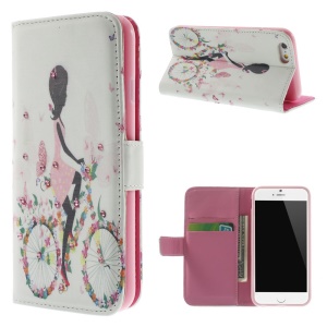 Riding Bicycle Beauty & Butterflies Diamante Leather Wallet Case w/ Stand for iPhone 6s / 6 4.7 inch