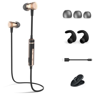 PICUN H6 Bluetooth Earphone Wireless Headphones with Mic Magnetic Design - Black / Gold Color