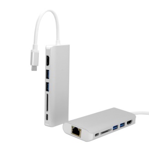 UC-034 Type-C to Gigabit Ethernet LAN Port + 2 USB 3.0 Ports + HDMI Port + SD Card Port Converter Adapter for PC Laptop & Macbook