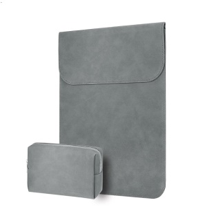 CARTINOE 15-inch Matte PU Leather Laptop Sleeve Bag with Magnetic Closure, Size: 285 x 395mm - Grey