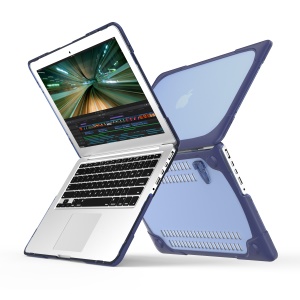 For MacBook Pro 13.3-inch 2-Piece Plastic TPU Kickstand Laptop Shell - Dark Blue