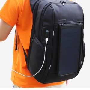 KINGSONS Outdoors Nylon Solar Panel Backpacks Convenience Charging Laptop Bags for 15.6 inch Laptop - Black