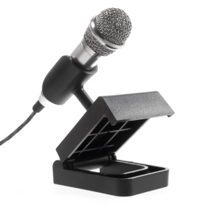 Voice Recording Chatting Mini Microphone Mic with Holder Stand for Mobile Phone Laptop Notebook - Silver