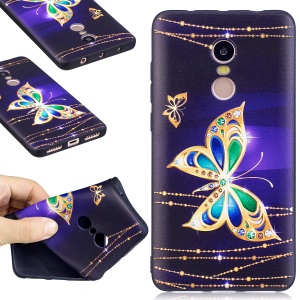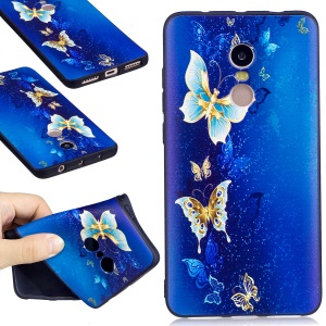 Embossed Pattern Matte TPU Phone Back Case Accessory for Xiaomi Redmi Note 4X - Gold Butterflies