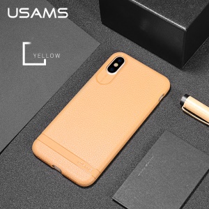 $2.89 USAMS Litchi Skin PU Leather Coated TPU Cell Phone Case for iPhone X 5.8 inch - Brown#1178503