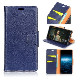 $10.68 Litchi Texture Genuine Leather Magnetic Wallet Stand Phone Case for Nokia 8 - Blue#1182083