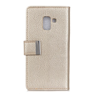 $3.40 Litchi Texture PU Leather Wallet Stand Mobile Casing for Samsung Galaxy A8+ (2018) - Gold#1233443