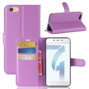 the same price Litchi Skin PU Leather Magnetic Wallet Stand Cell Phone Case for Oppo A71 - Purple#1191587
