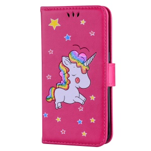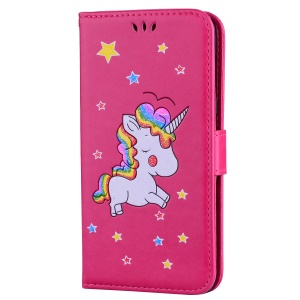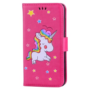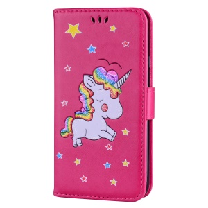 Flash Powder Unicorn Imprint Flower Leather Wallet Stand Shell for Xiaomi Redmi Note 4 - Rose