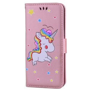 the same price Flash Powder Unicorn Imprint Flower Leather Wallet Stand Shell for Samsung Galaxy S8 SM-G950 - Rose Gold#1183604