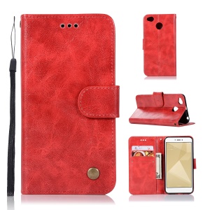 $2.65 Vintage PU Leather Wallet Stand Mobile Shell for Xiaomi Redmi 4X - Red#1220179