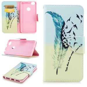 Patterned Wallet Leather Stand Case for Xiaomi Redmi Note 5A Prime/Y1 (India) - Feather Pattern