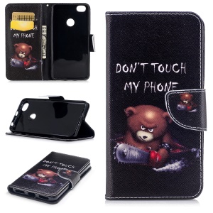 Pattern Printing Wallet Leather Folio Cover for Xiaomi Redmi Note 5A Prime/Y1 (India) - Brown Bear and Warning Words