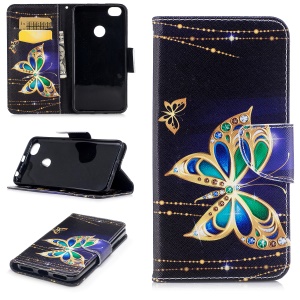 Pattern Printing PU Leather Wallet Mobile Phone Case with Stand for Xiaomi Redmi Note 5A Prime / Redmi Y1 - Butterfly with Diamond