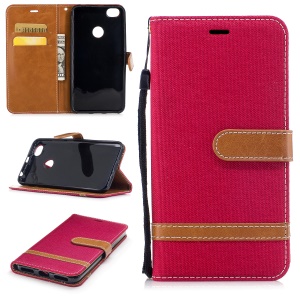 For Xiaomi Redmi Note 5A Prime / Redmi Y1 Contrast Color Jean Cloth Wallet PU Leather Stand Phone Shell - Red
