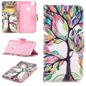 Patterned Wallet Leather Case Stand for Xiaomi Redmi Note 5A Prime/Y1 (India) - Colorized Tree