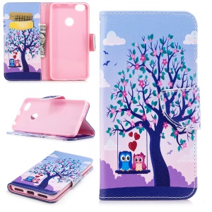 Pattern Printing PU Leather Stand Wallet Case for Xiaomi Redmi Note 5A Prime / Redmi Y1 - Two Swinging Owls