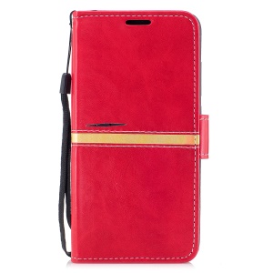 Graceful Stitching Leather Wallet Stand Phone Case Shell with Strap for Xiaomi Redmi Note 5A Prime / Y1 (India) - Red
