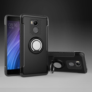 Ring Holder TPU PC Armor Back Case for Xiaomi Redmi 4 - Black