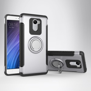 360 Degree Rotary Ring Holder Kickstand PC + TPU Combo Back Mobile Cover for Xiaomi Redmi Note 4X - Silver