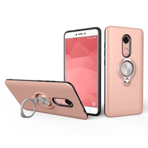 360 Degree Rotary Ring Holder PC + TPU Hybrid Back Phone Case for Xiaomi Redmi Note 4X - Rose Gold