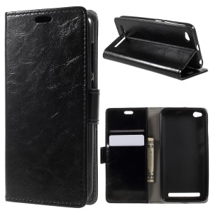 Crazy Horse Leather Wallet Stand Phone Case for Xiaomi Redmi 5A - Black