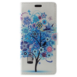 Pattern Printing PU Leather Wallet Stand Cell Phone Cover for Xiaomi Redmi 5A - Blue Tree with Flower