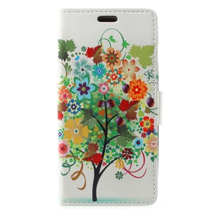 Pattern Printing PU Leather Wallet Stand Phone Casing for Xiaomi Redmi 5A - Orange Tree with Colorful Flowers