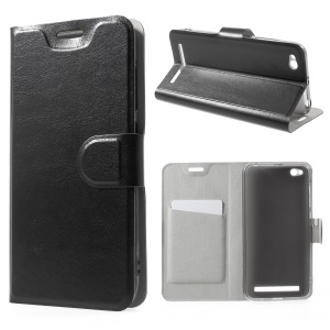 Crazy Horse Card Holder PU Leather Case Cover for Xiaomi Redmi 5A Built-in Steel Sheet - Black