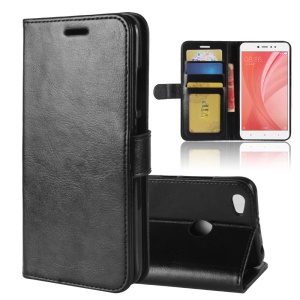 Crazy Horse Split Leather Wallet Stand Case for Xiaomi Redmi Note 5A Prime / Redmi Y1 - Black