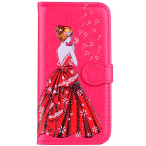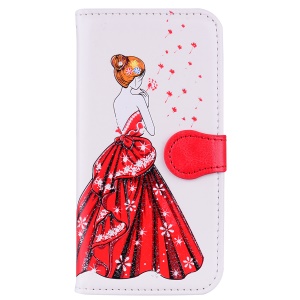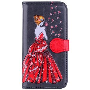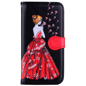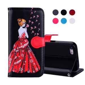 the same price Flash Powder Pretty Girl's Back Leather Wallet Shell for iPhone 6s / 6 - Red#1211677
