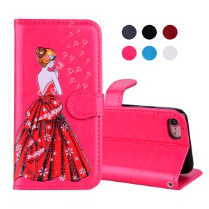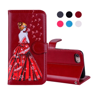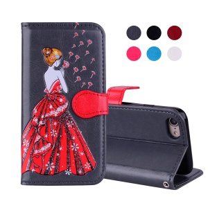 the same price Flash Powder Pretty Girl's Back Leather Wallet Shell Case for iPhone 8/7 4.7 inch - Red#1211066