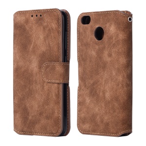 Vintage Style Matte Leather Skin Wallet Mobile Casing with Stand for Xiaomi Redmi 4X - Brown