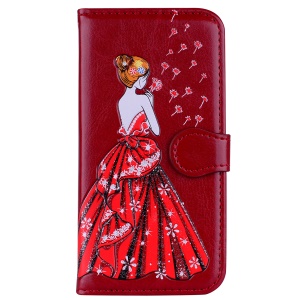 Flash Powder Pretty Girl's Back Leather Stand Flip Cover for Xiaomi Redmi Note 5A Prime / Redmi Y1 - Red