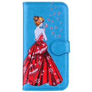 the same price Flash Powder Pretty Girl's Back Leather Wallet Cell Phone Case for iPhone 6s / 6 - Baby Blue#1211136