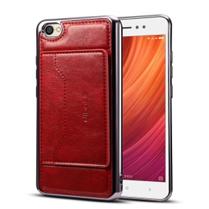 Leather Coated Plated TPU Card Holder Mobile Case for Xiaomi Redmi Note 5A/Y1 Lite (India) - Red