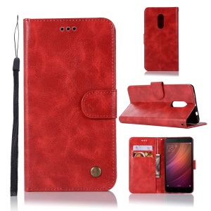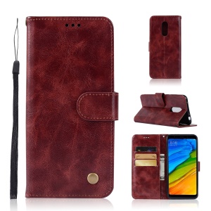 Premium Vintage PU Leather Wallet Stand Mobile Case for Xiaomi Redmi 5 - Wine Red