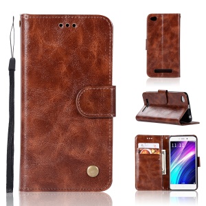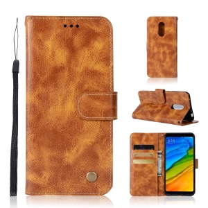 Premium Vintage PU Leather Wallet Stand Mobile Cover for Xiaomi Redmi 5 - Brown