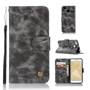 Vintage PU Leather Stand Phone Casing for Xiaomi Redmi 4X - Grey