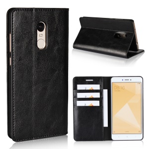 the same price For Xiaomi Redmi Note 4X Crazy Horse Grain Genuine Leather Wallet Case with Stand - Black#1220640