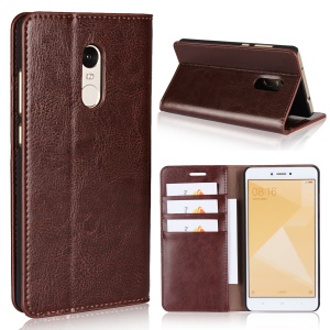 For Xiaomi Redmi Note 4X Crazy Horse Grain Genuine Leather Stand Wallet Protective Case - Coffee