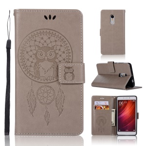 Imprinted Dream Catcher Owl Leather Wallet Cover for Xiaomi Redmi Note 4X / Note 4 - Grey