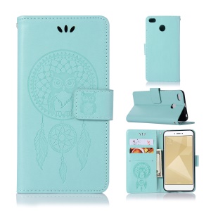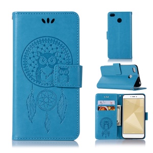 Imprinted Dream Catcher Owl Wallet Leather Stand Cover for Xiaomi Redmi 4X - Baby Blue
