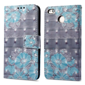 For Xiaomi Redmi 4X 3D Butterfly Series PU Leather Wallet Stand Protective Cover Case - Blue Flower