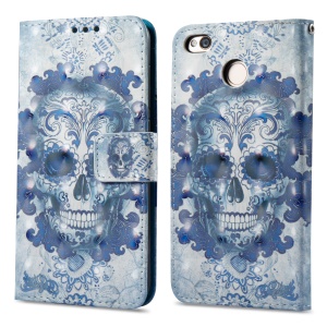 For Xiaomi Redmi 4X 3D Butterfly Series Leather Stand Protective Magnetic Case Shell - Skull
