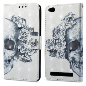 For Xiaomi Redmi 5A 3D Vivid Pattern Wallet Leather Phone Protective Case Shell - Skull and Flower