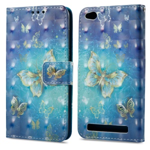 3D Vivid Pattern Wallet Leather Phone Magnetic Cover for Xiaomi Redmi 5A - Gold Butterflies