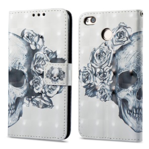 3D Butterfly Series Leather Flip Stand Cover for Xiaomi Redmi 4X - Skull with Flower